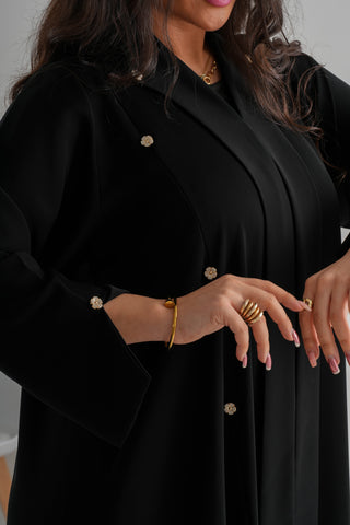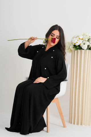 NY-71 - BLACK PLAIN ABAYA WITH A TOUCH OF FLOWER SHAPED BUTTONS (KOREAN NIDA)