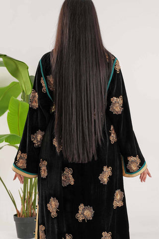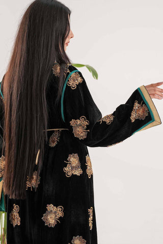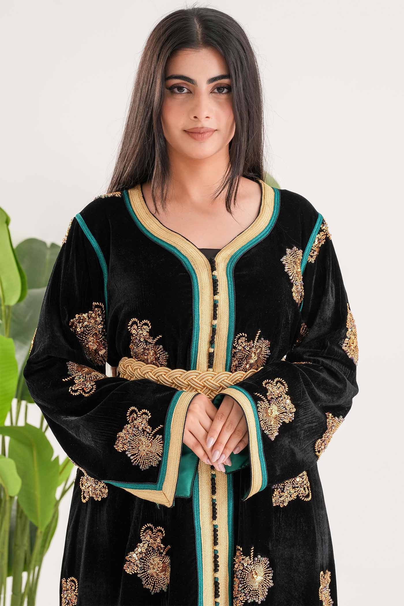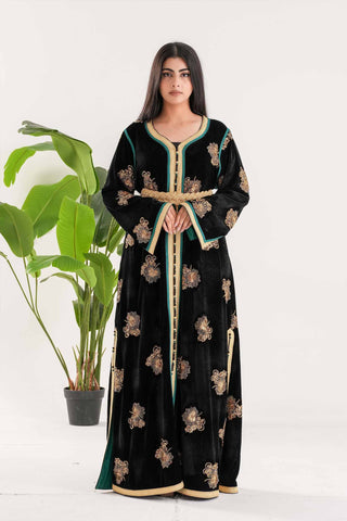NY-90 BLACK AND GOLD CAFTAN WITH BELT