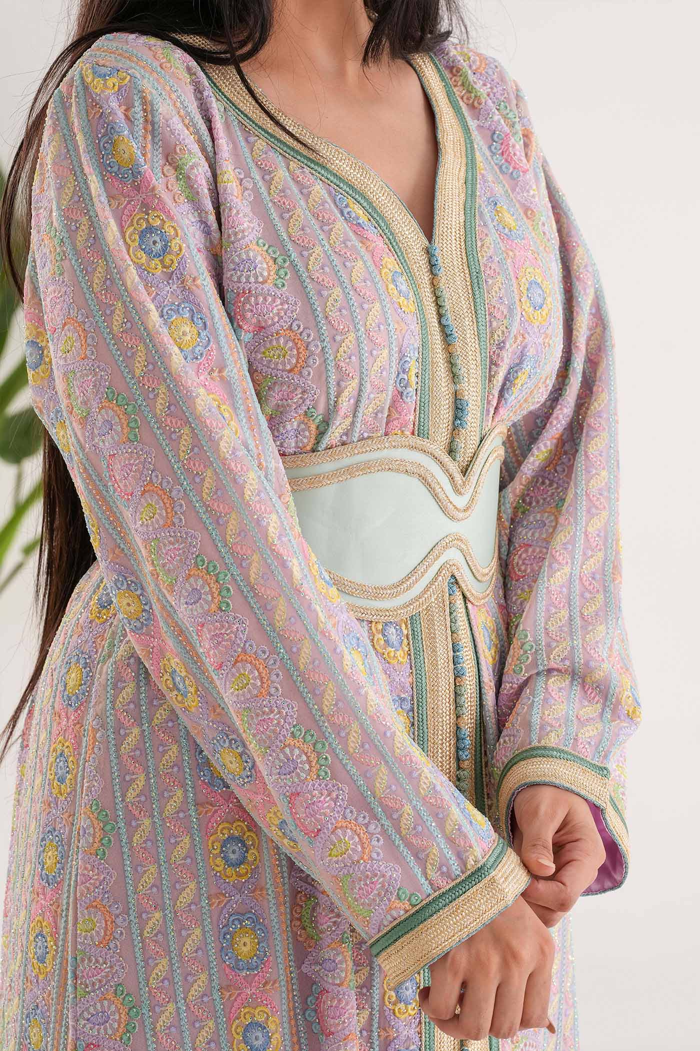 NY-89 ORCHID AND PASTEL PINK PARTY WEAR WITH BELT