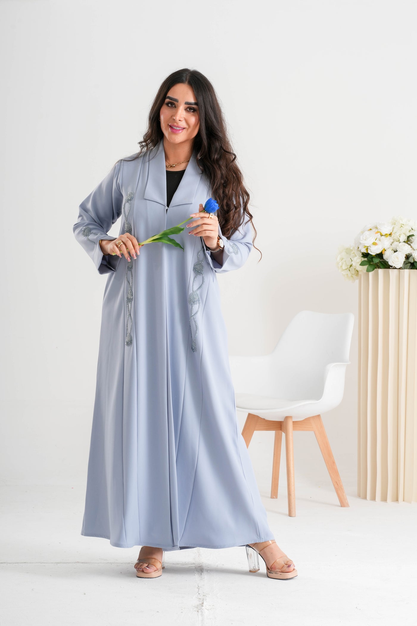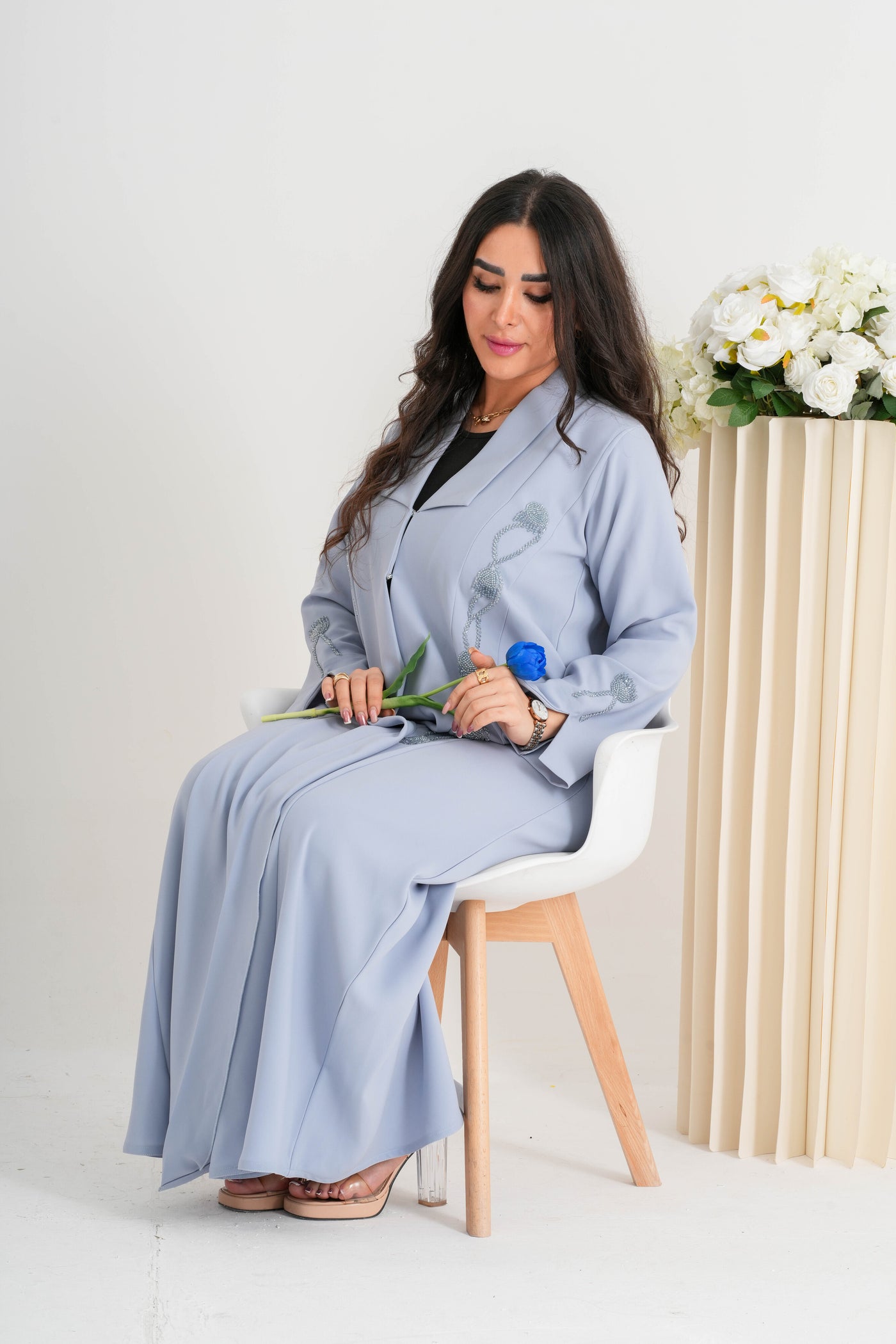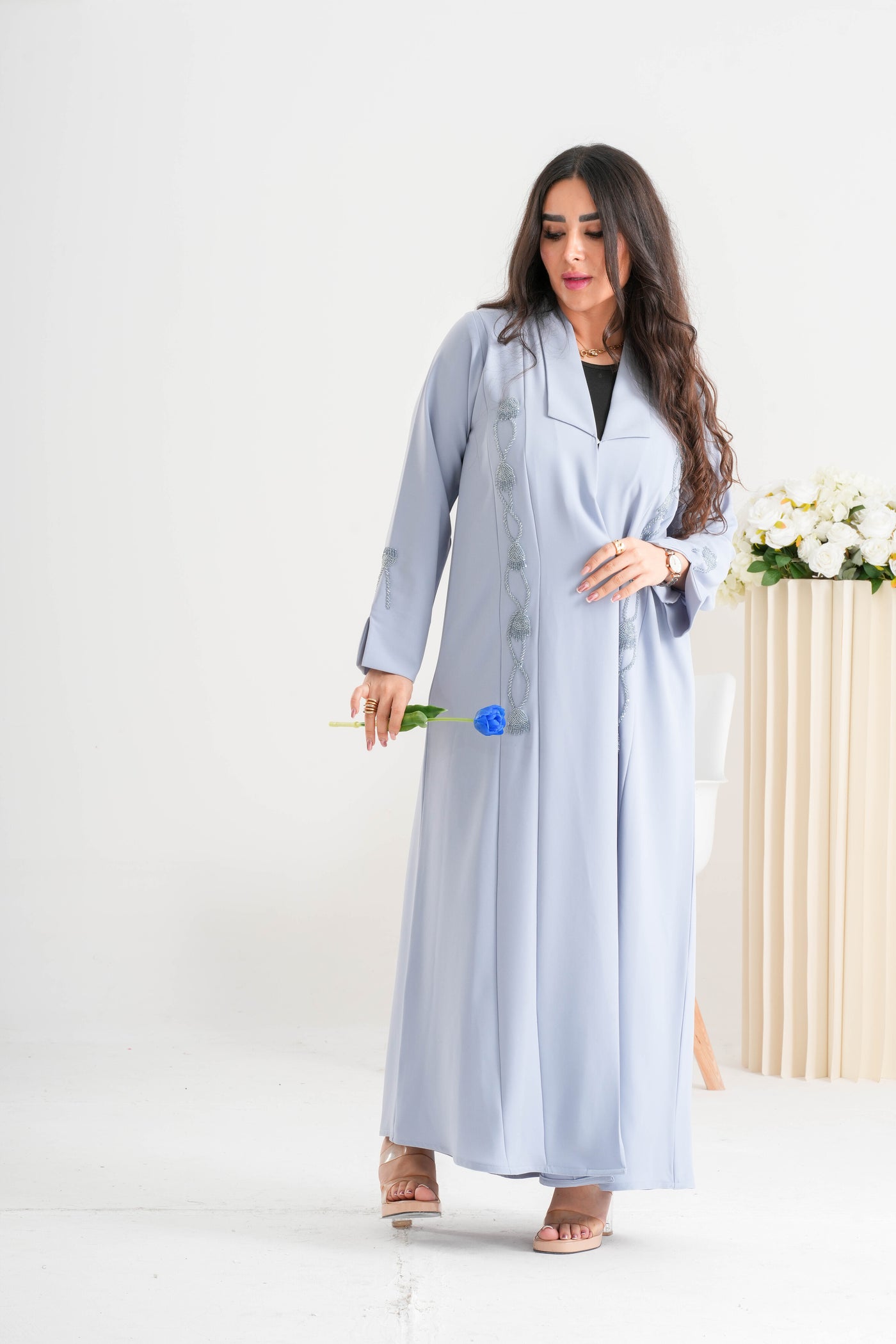 NY-74 - SKY BLUE ABAYA WITH HAND AND FRONT HANDWORK (BARBIE)
